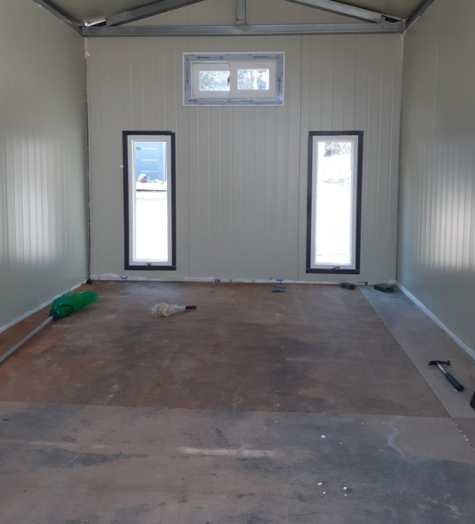 경량 철골조에 판넬을 결합한 형태로 내부에서 찍은 모습이다.