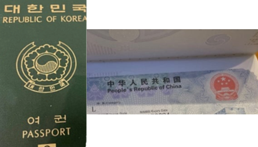여권안의 여러 page중에 한개 page에 위에 오른쪽 그림과 같이 중국비자가 덧붙여지는 형태이다.